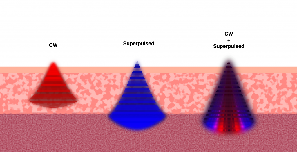 Measured in watts (W), pulse power (aka peak power) represents the maximum power of the laser. Pulse power has different clinical relevance according to whether the wavelength is a continuous or superpulsed wavelength. High pulse power of a superpulsed laser represents the potential to deliver energy deeply without thermal risk. The combination of wavelength and pulse power drive tissue penetration. Consider the type and depth of tissues to be treated when choosing average and pulse powers of a laser for your practice.